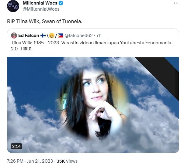 Right-wing Finnish e-celeb Tiina Wiik died recently for, as yet, unknown reasons. She was only 37 or 38.